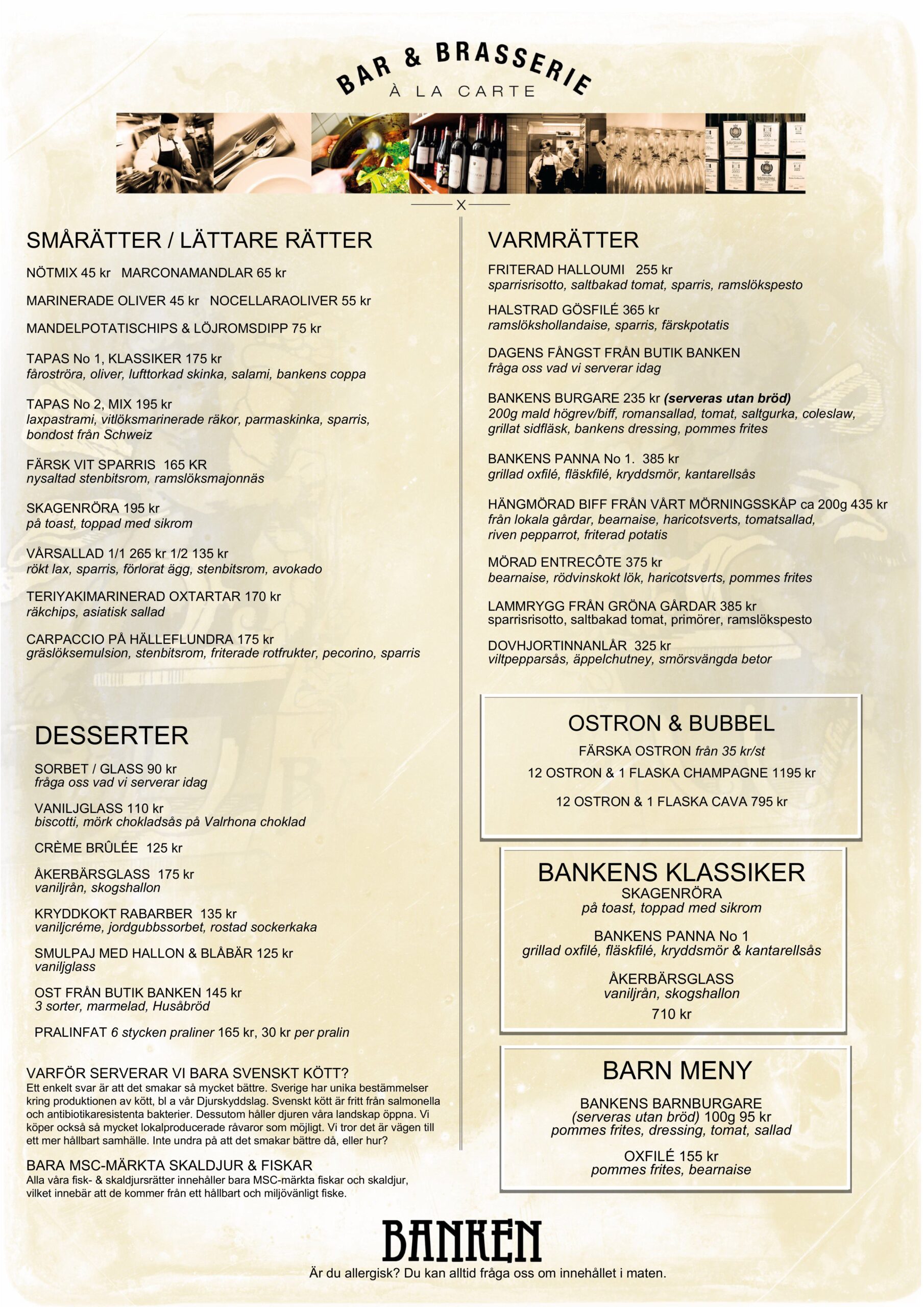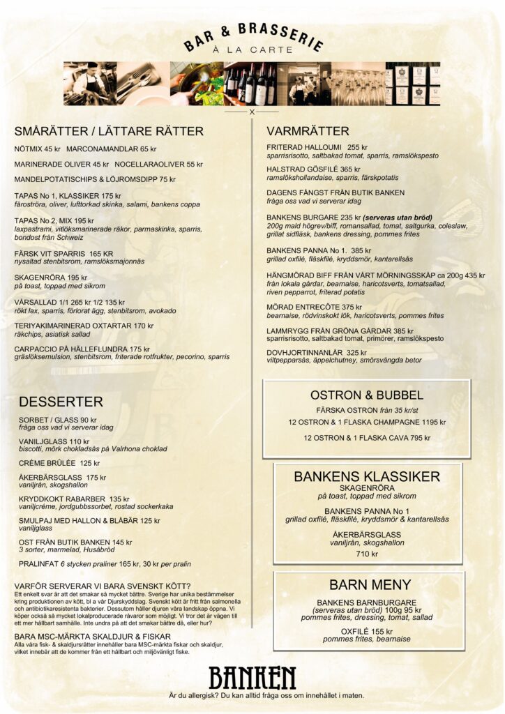 ÄR NI ETT STÖRRE sällskap (8 eller fler) ber vi er kontakta oss för att få en a la carte meny anpassad för större sällskap skickad till er. Allt för att vi ska kunna ge er den bästa matupplevelsen & service. Om ni har speciella önskemål eller allergener anpassar vi rätterna i den mån det är möjligt.