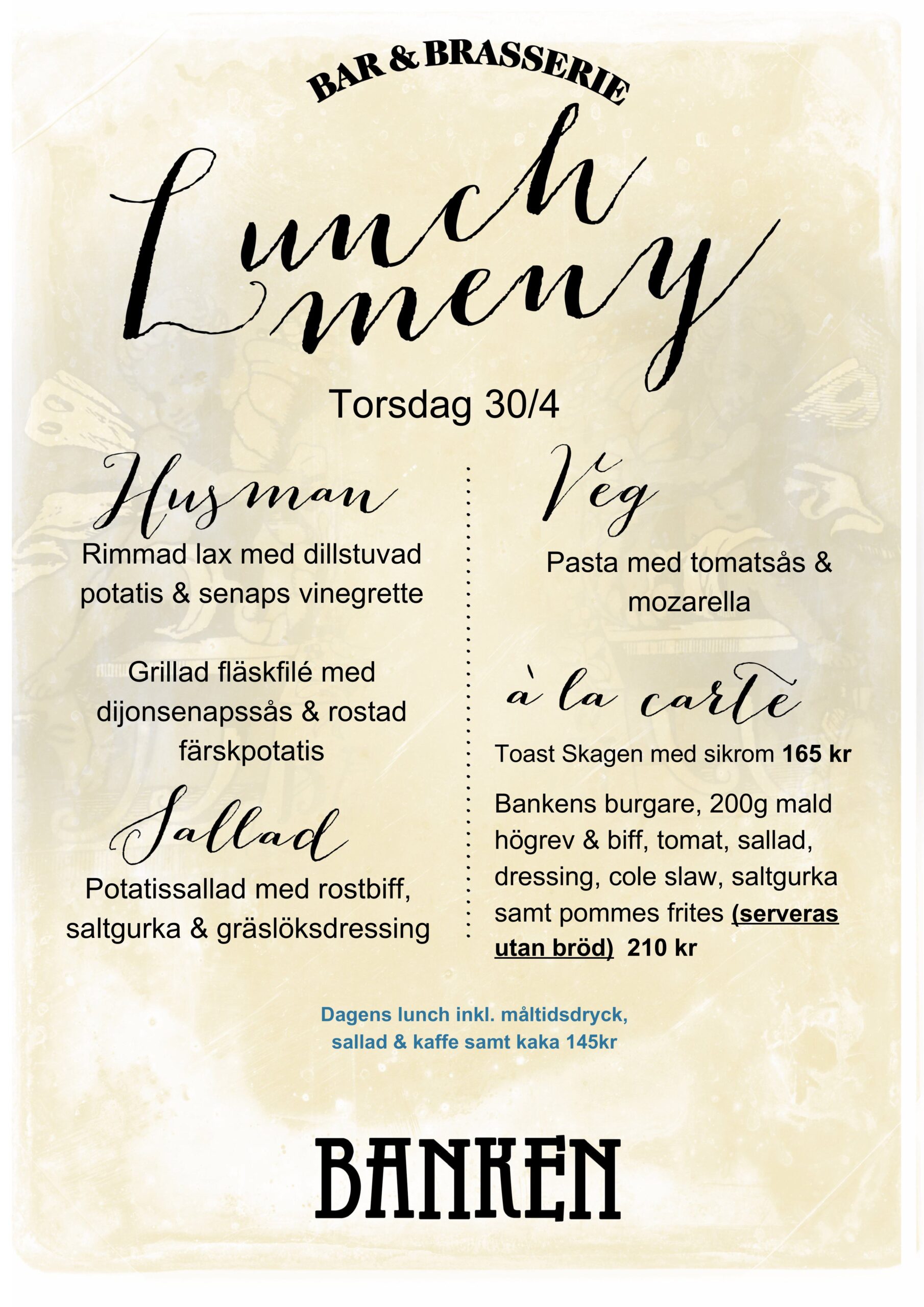 Dagens lunch serveras 11.30 – 14.00 (måndag-fredag)